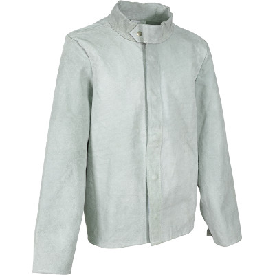 Casaco de soldador concebido para proteger o tronco e os braços dos riscos térmicos e de salpicos durante a soldadura, oferecendo conforto e durabilidade para trabalhos intensivos.