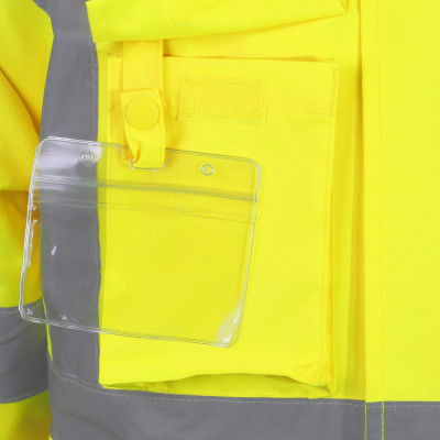 | - 100% poliéster (Oxford 300D), revestido com TPU, 170 g/m² - Forro: 100% poliéster mesh, 60 g/m² - Costuras seladas - Capuz com cordões, enrolado na gola - 3 bolsos externos e 1 bolso interno - Suporte para cartão de identificação - Fecho de correr (duplo sentido) sob aba aderente - Fitas retro-refletoras |
