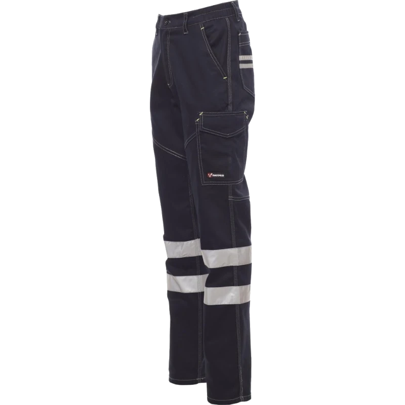 As calças Worker Reflex foram desenvolvidas para proporcionar maior segurança em ambientes de baixa luminosidade, graças às suas faixas refletoras estrategicamente colocadas. O tecido twill sanforizado 100% algodão e a tripla costura garantem elevada resistência ao uso intensivo, enquanto os múltiplos bolsos funcionais oferecem praticidade no trabalho diário em manutenção, logística e construção.